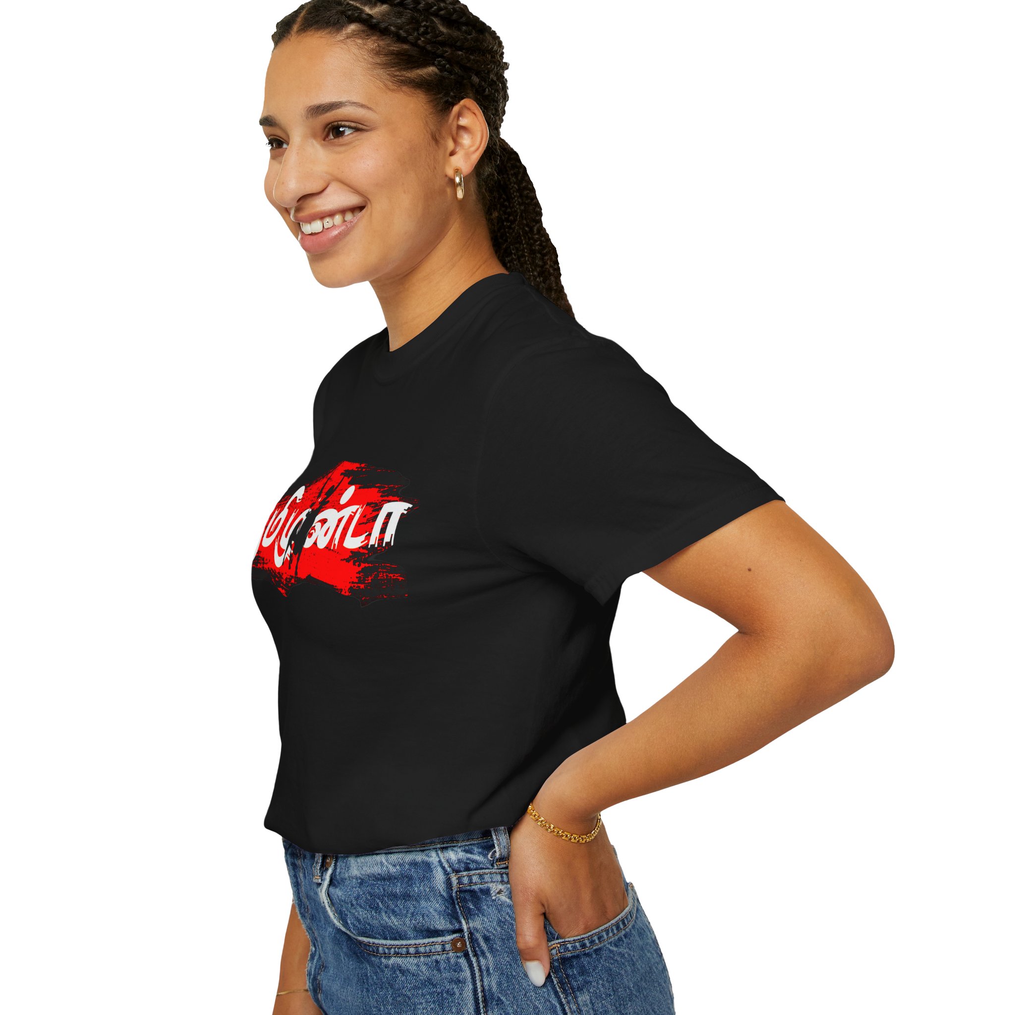 Wear your Tamil pride with quiet confidence. This soft, garment-dyed tee carries the warmth of hand-washed colors and a lived-in feel — the kind that settles into your day and becomes part of your routine. The relaxed, heavyweight cut sits comfortably for long walks through city streets, conversation at family gatherings, or evenings at cultural events. The dyeing after construction gives each shirt a subtly unique tone and texture, so your Tamilanda shirt feels personal from the first wear. Thoughtful details like double-needle seams and a tubular, side-seam-free body mean it holds its shape and age beautifully alongside you. Whether you’re heading to a community meet-up, a festival, or a casual night out, this tee speaks to heritage in a calm, unmistakable way.